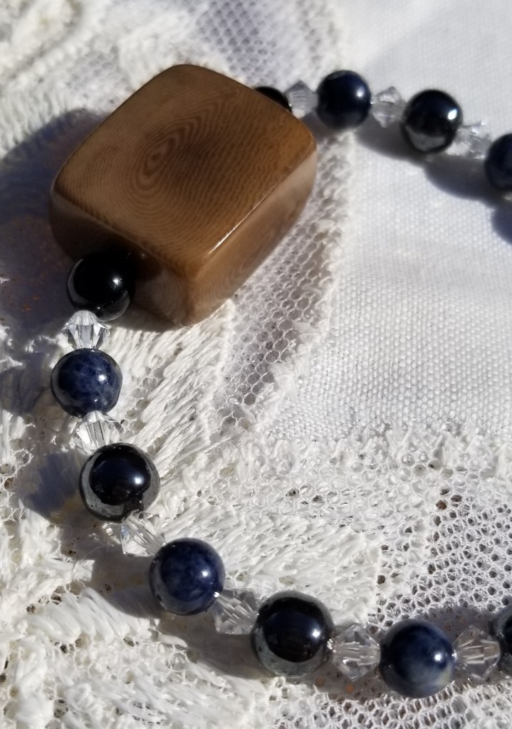 Tagua Nut, Black Tourmaline, Hematite, Sapphire, and Quartz