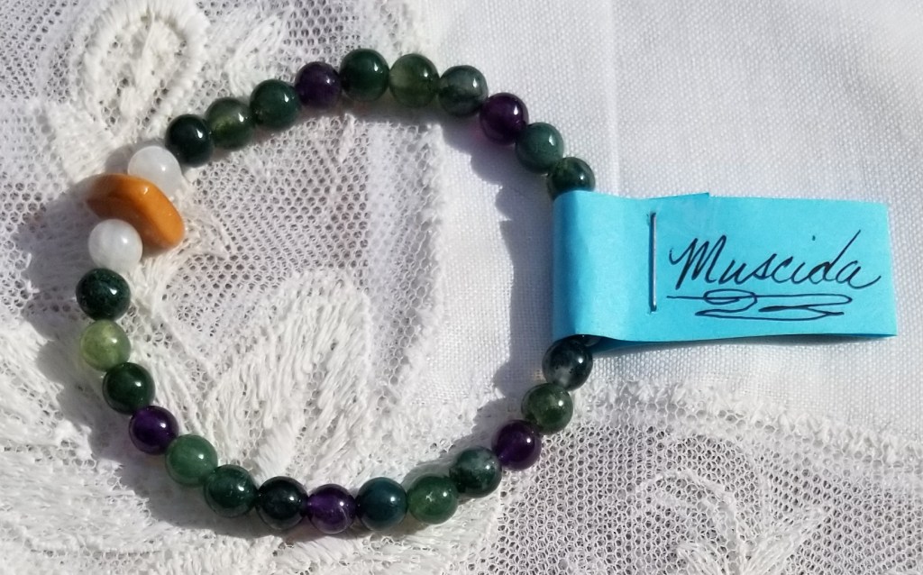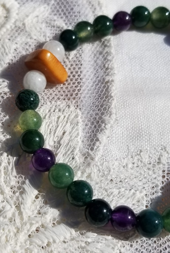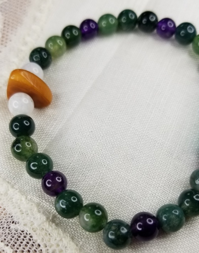 Tagua Nut Ivory Bead, Amethyst, Moonstone, and Green Moss Agate