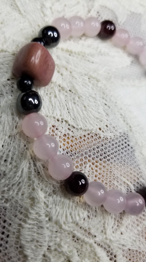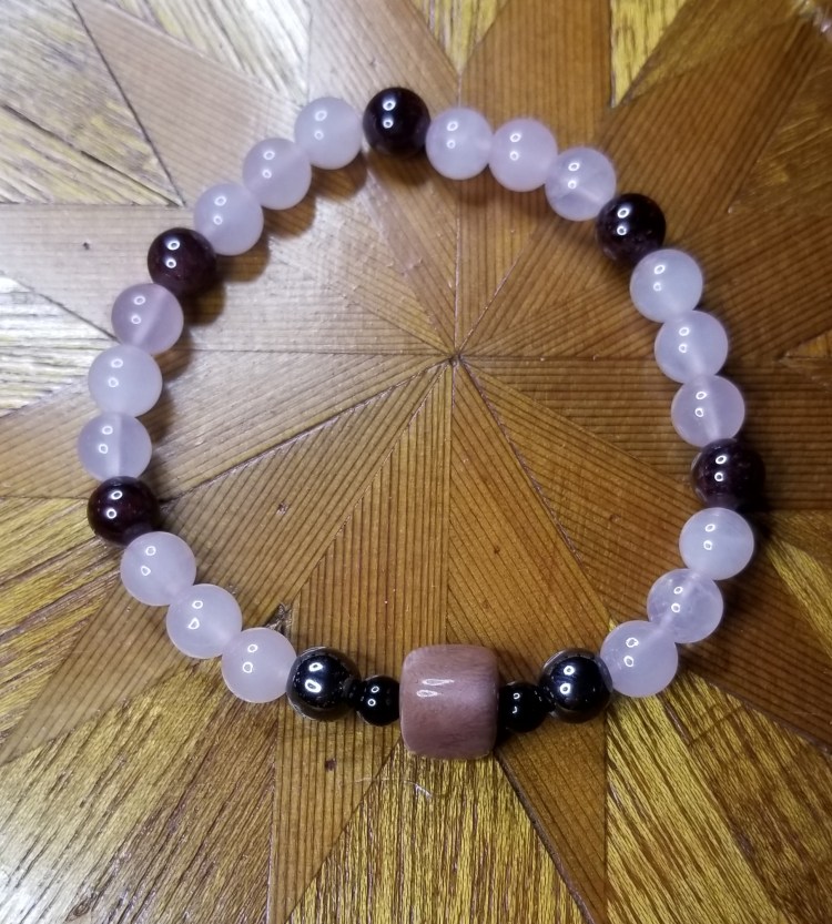 Tagua Nut Bead, Black Tourmaline, Garnet, Rose Quartz, and Hematite