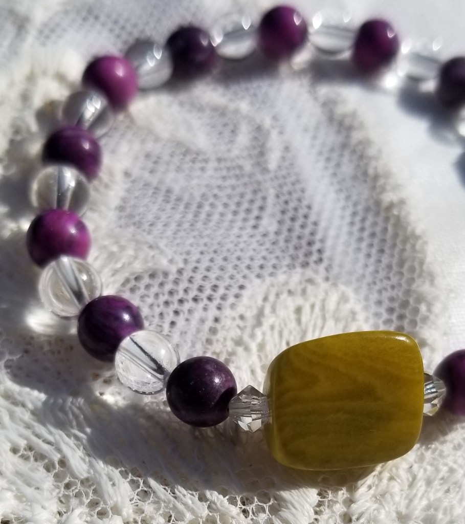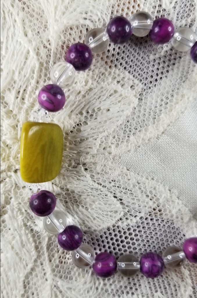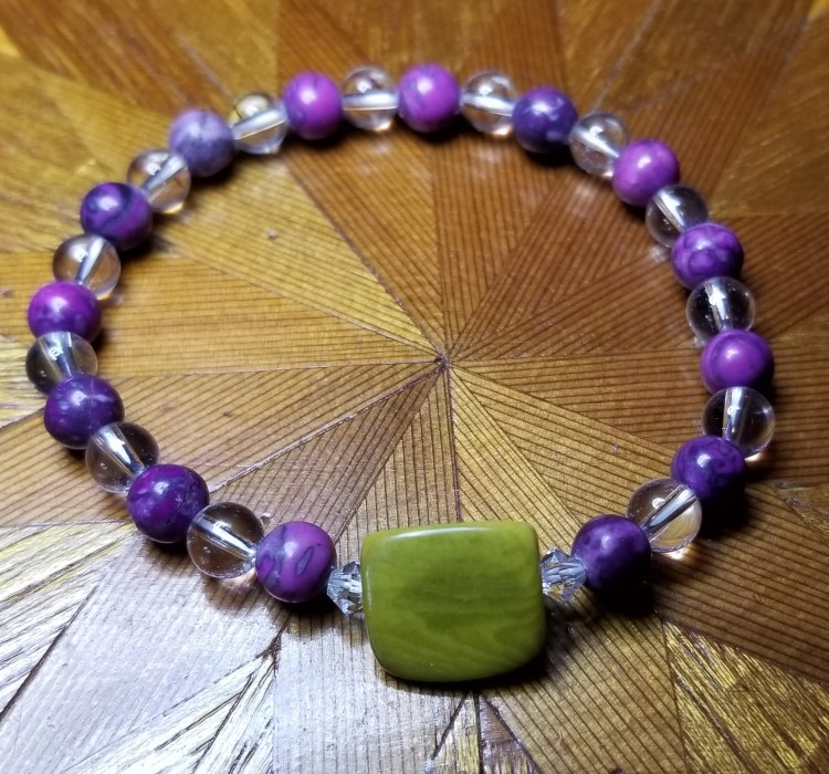 Lime green Ecuador Tagua Nut, Purple Sugilite Dragon Shard, and Quartz