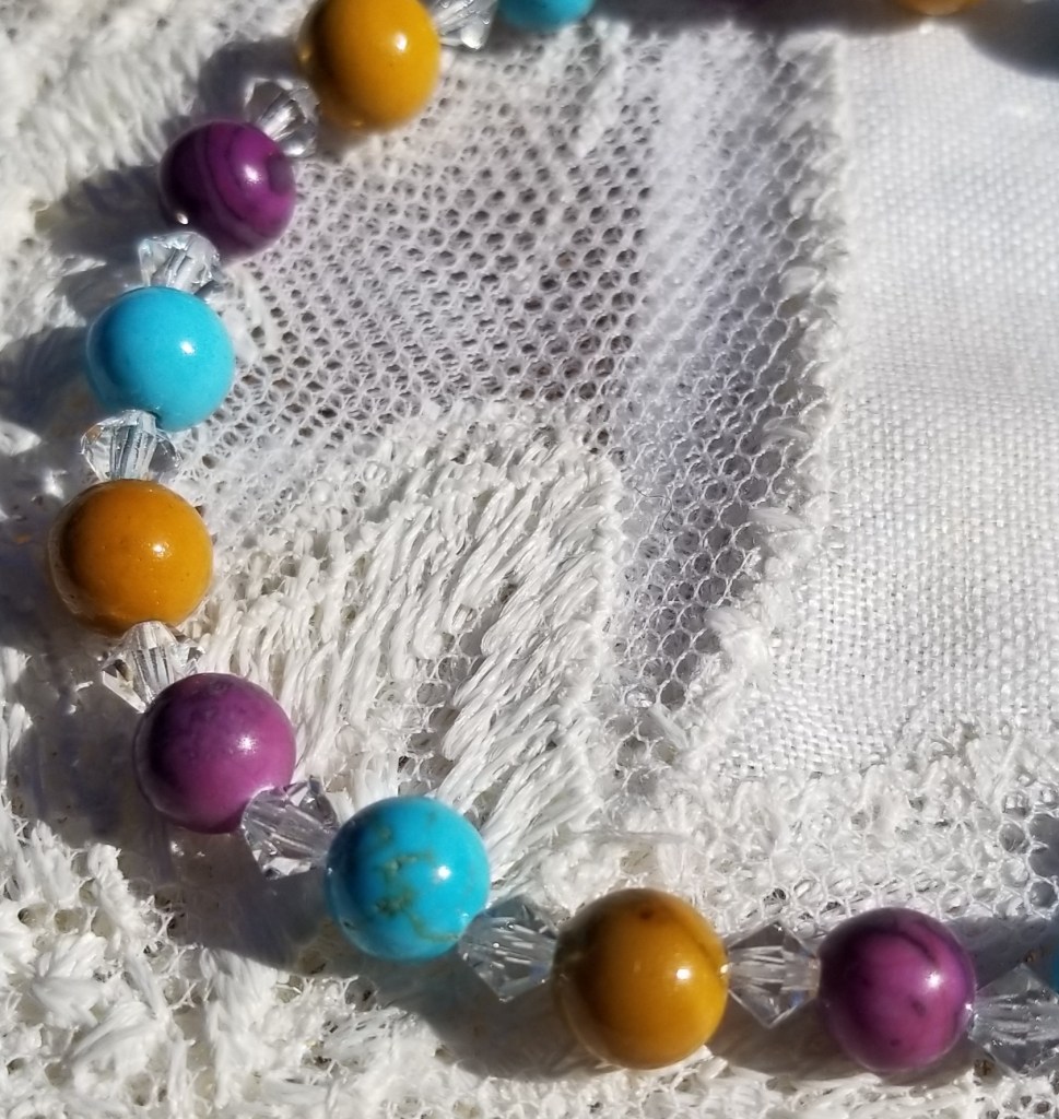 Yellow Jasper, Quartz, Purple Dragon Shard Sugilite, and Turquoise